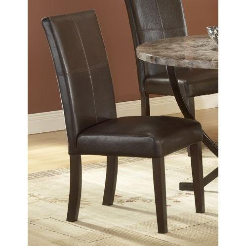Hillsdale Furniture's Monaco dining collection offers luxury and elegance at a price you can afford. A dynamic faux marble top sits atop a dramatic and strong metal globed base, and our sumptuous parson's chairs subtly compliment the rich colors in the table top. Comfortable and understated, the upholstered parson's chairs are covered in a rich brown faux leather with attractive stitched accents.